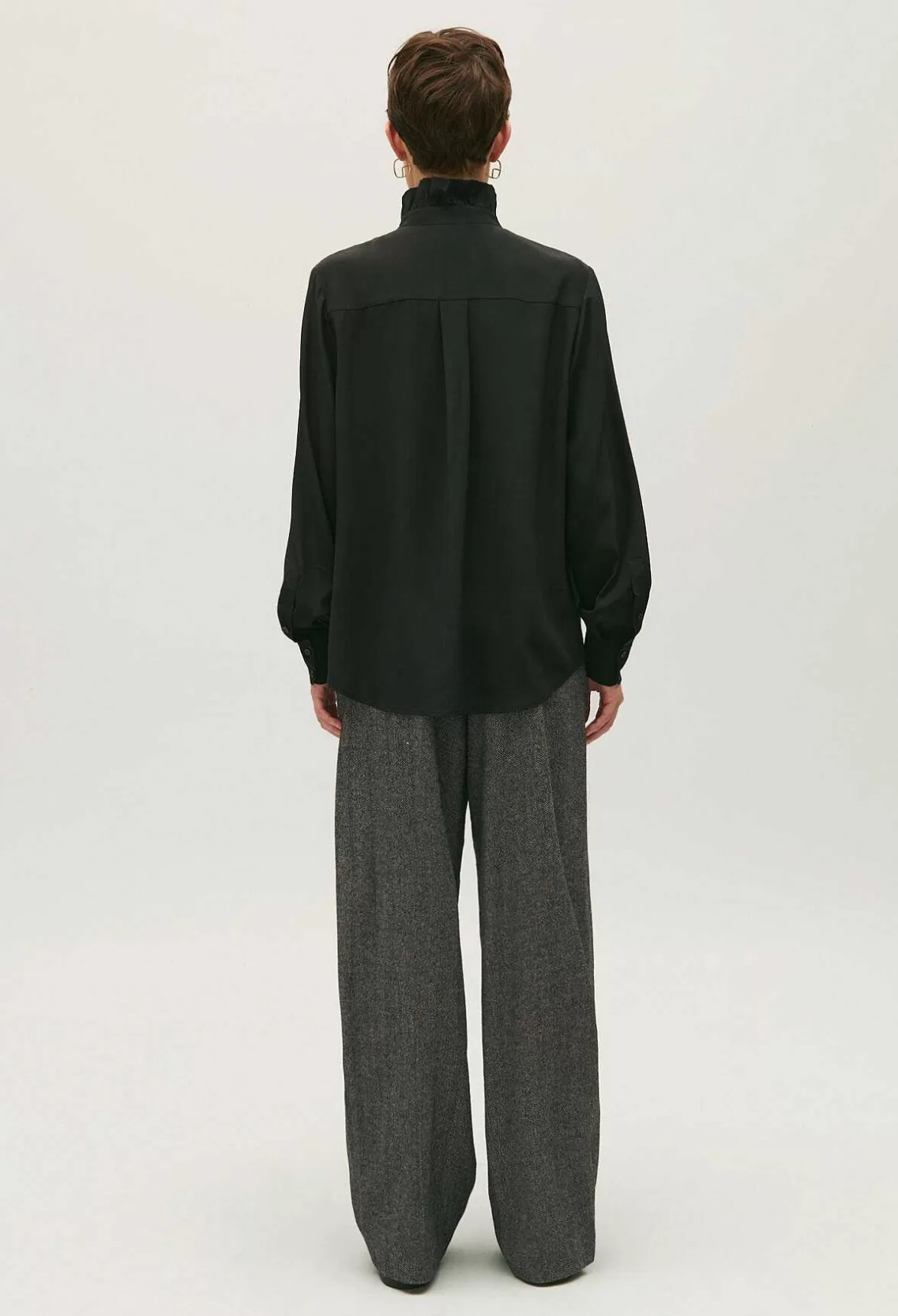 Floaty Silk ShirtClassic Straight FitRuffled High CollarLong SleevesCuff Plackets Model Is 172Cm And Wears A Size 34