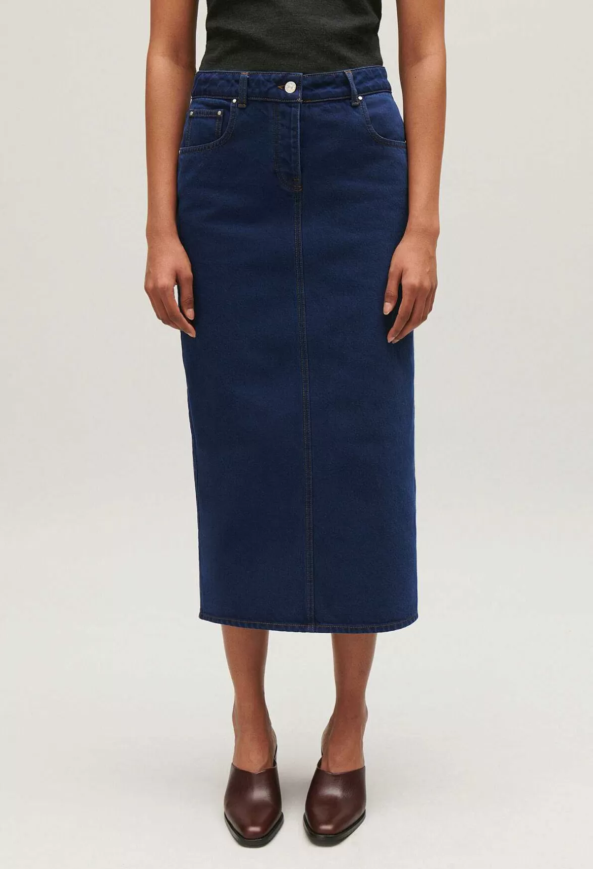 Mid-Rise Denim Midi SkirtStraight Fit And Classic LookBack Slit, Waist Belt Loops 5 Pockets, Zip And Button Fastening, B…