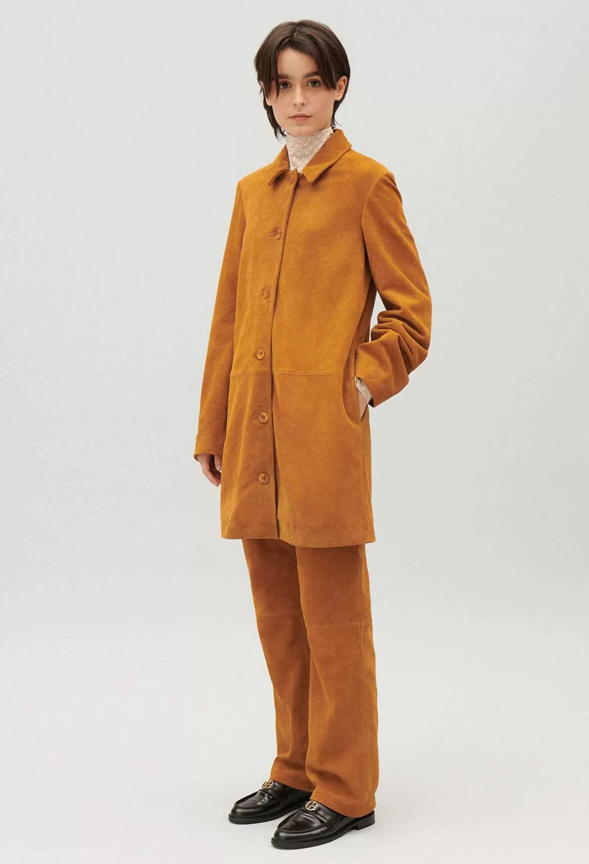 Straight Coat Made Of Suede Calfskin LeatherStraight Fit And Classic LookShirt Collar, Tone-On-Tone Buttons And Long Sle…