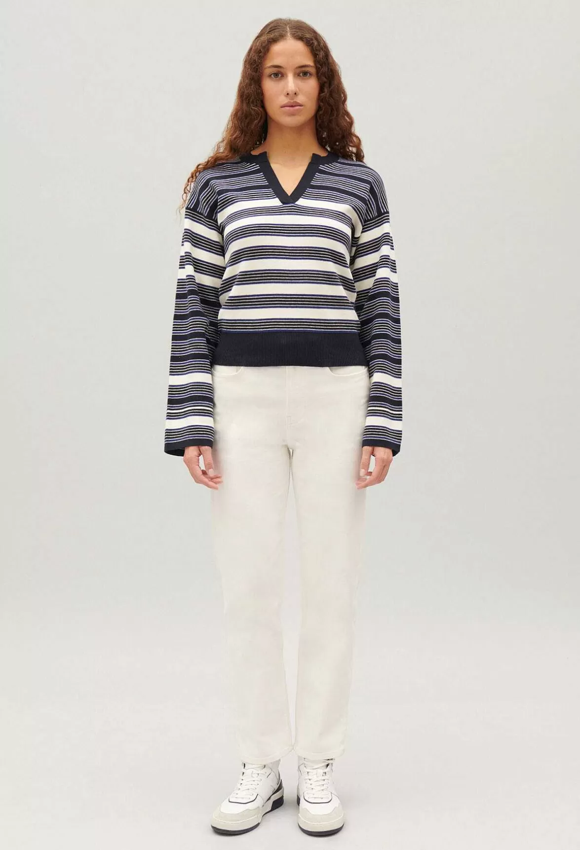 Henley Neck Jumper With Long Sleeves And StripesStraight Fit And Classic LookRibbed Neckline, Cuffs And Waist Model Is 1…