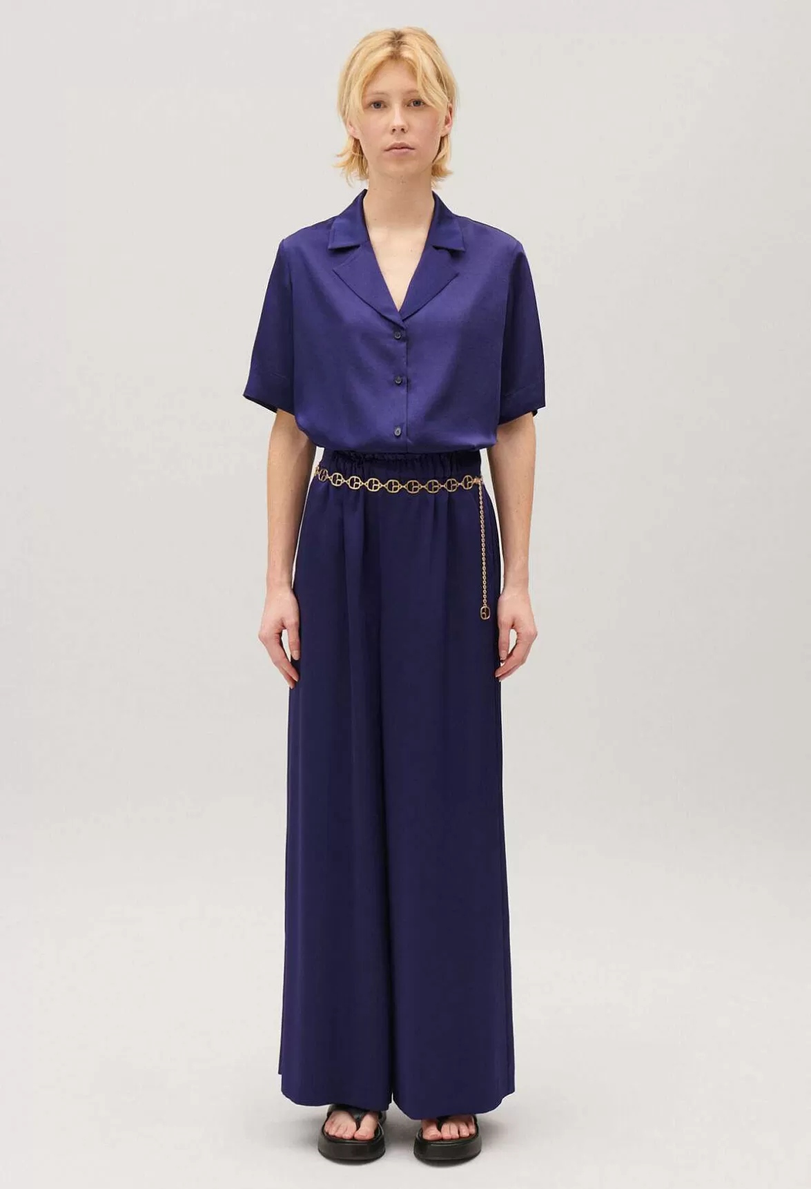 Flowing Satin ShirtStraight Cut, Slightly Oversized Pyjama StyleOpen Shirt Collar, Short Sleeves, Button Fastening, Smal…