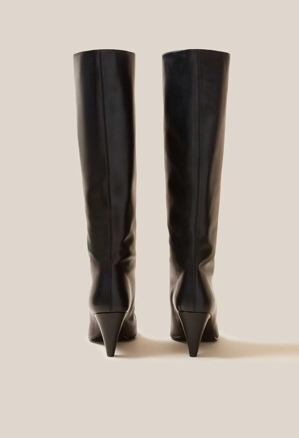 Plain Leather Knee-High BootsPointed ToeHeel: 7.5Cm Made In PortugalModel Is 174Cm And Wears A Size