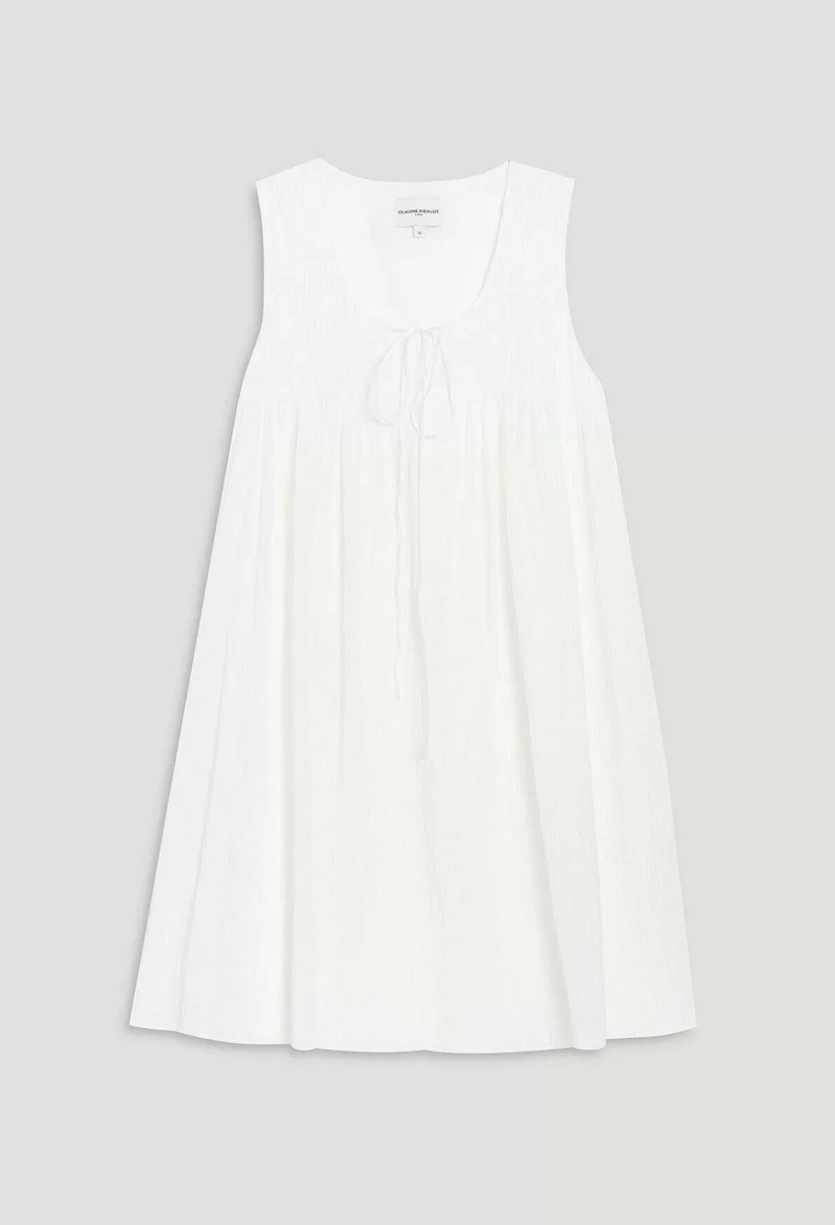 Short Cotton Floaty Babydoll DressSleeveless, Wide Neck With Ties, Ruching On Chest Model Is 175Cm And Wears A Size 34