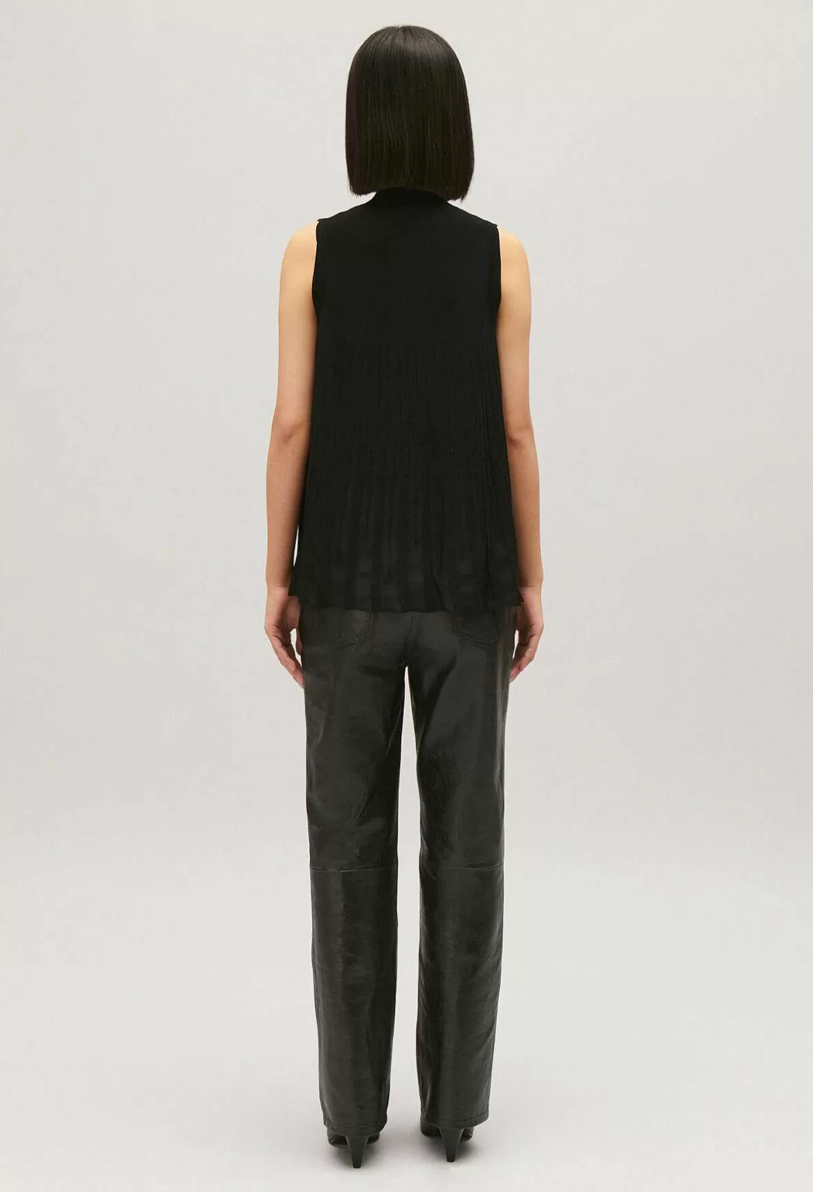Float Knit Top With Sheer DetailsSleeveless, Stand-Up Collar, Double-Breasted Fastening And Long Slit Down The FrontRemo…