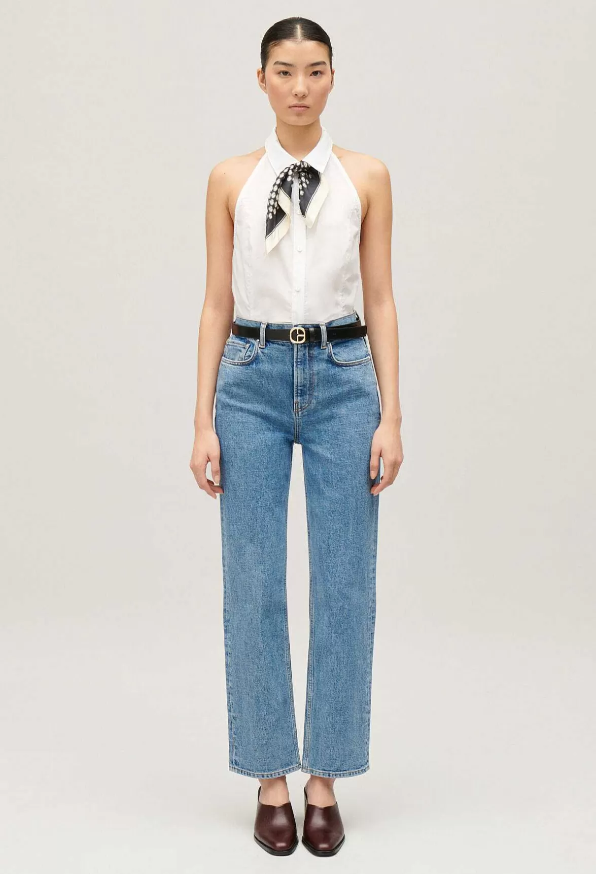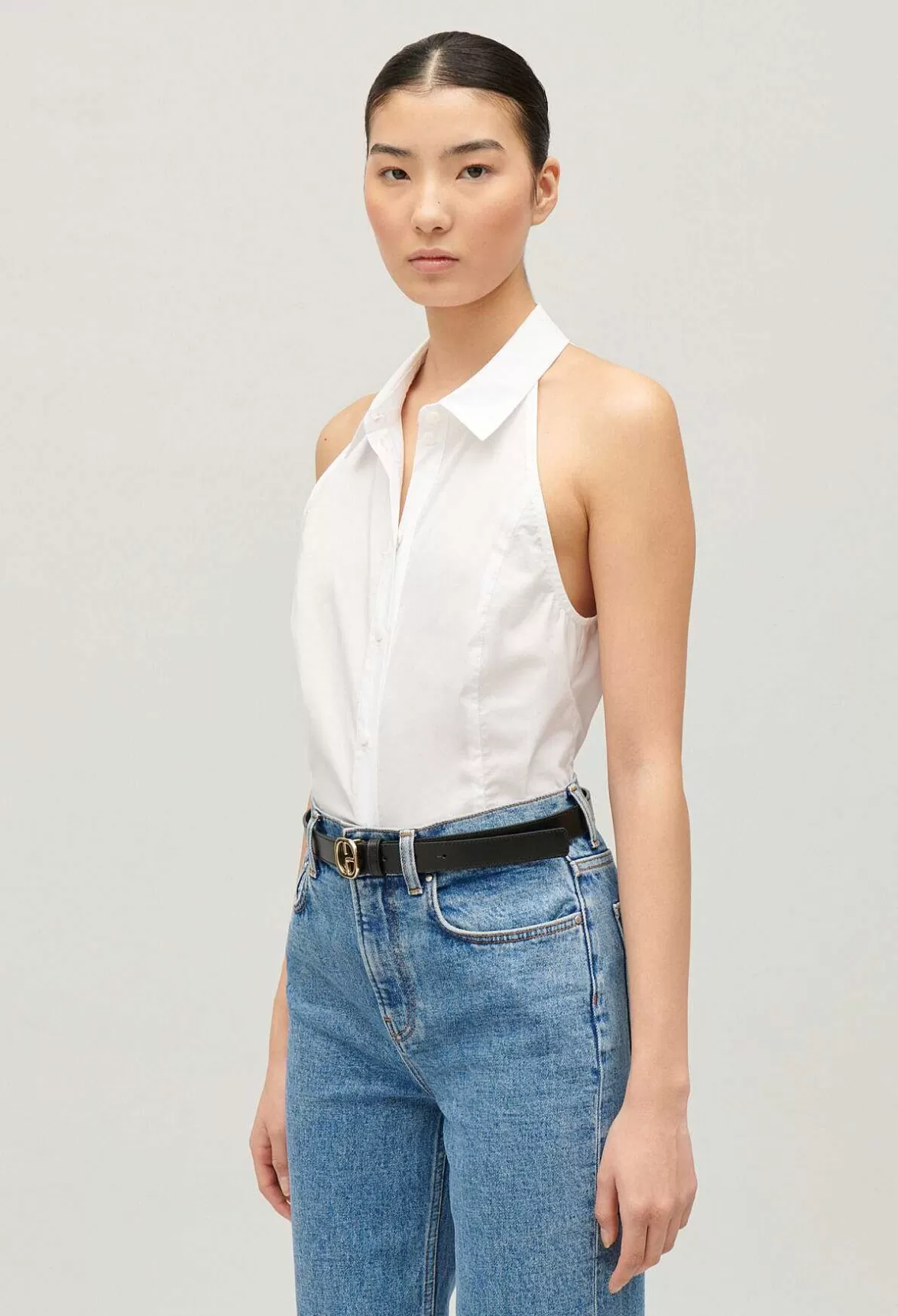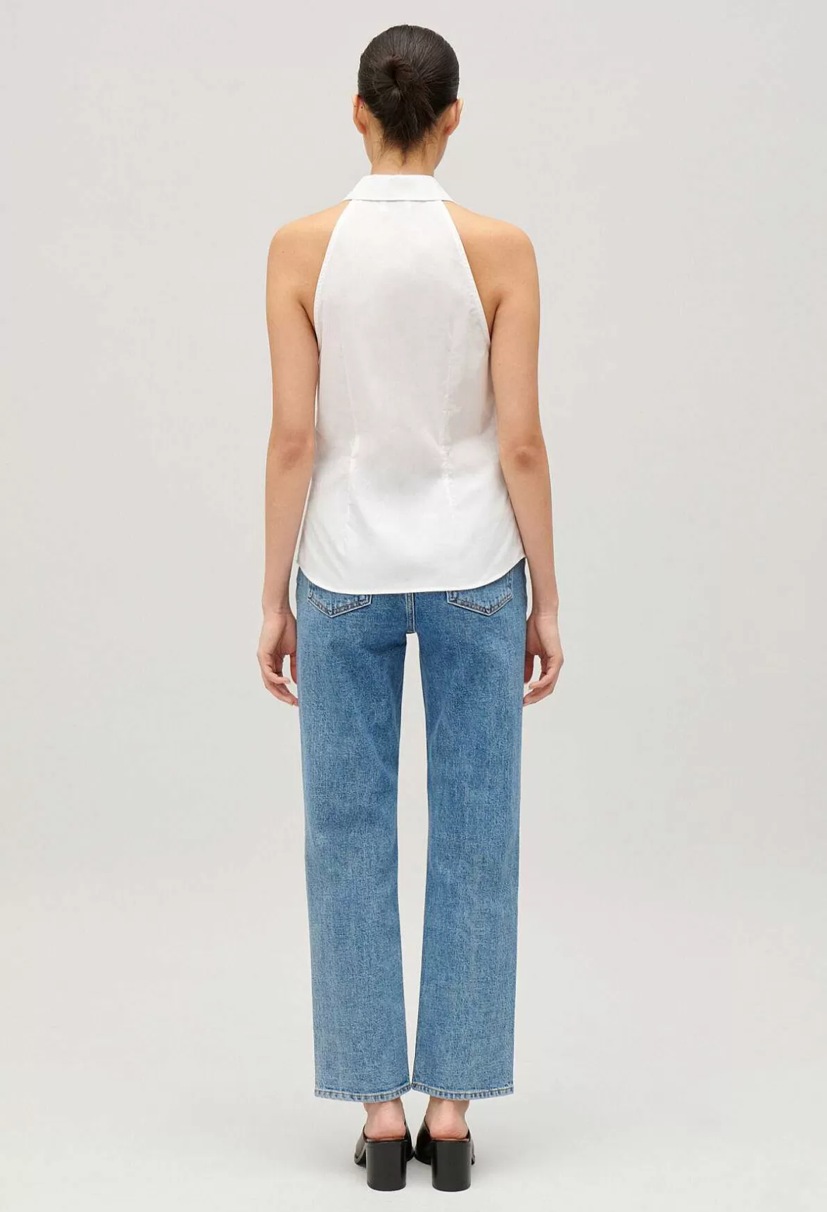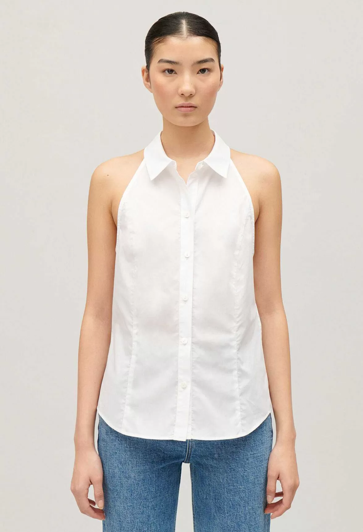 White Cotton ShirtSleeveless, Shirt Collar, Button Fastening, Darts On Front And Back Model Is 173Cm And Wears A Size 34